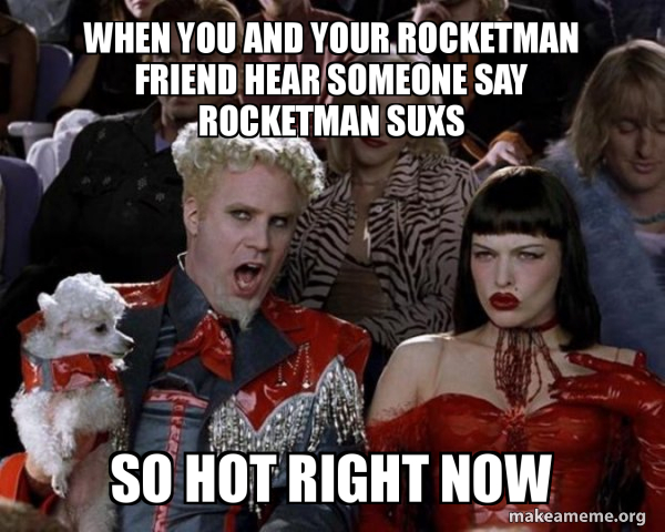 Find and save rocketman memes | commonly known for getting messages in his inbox for m2m (man to man) action. Make your own images with our meme generator or animated gif maker. Search the best rocketman memes from instagram, facebook, vine, and twitter. Taron egerton shines as sir elton john in a new trailer of the upcoming biopic rocket man, based on the life of the famed singer. Rocketman as out of context john mulaney quotes.